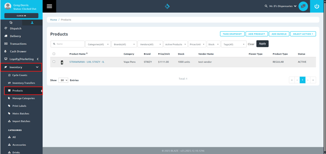 Navigate to your BLAZE dashboard > products > product list and select the product to which you want to add terpenes.