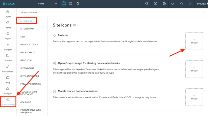 How to add site icons such as Favicon, Social Networks Image, and Home Screen Icon