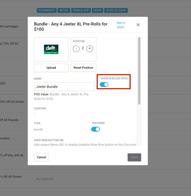 How to enable specific deals in ECOM Mission Control to be displayed on your BLAZE Site Deals widget