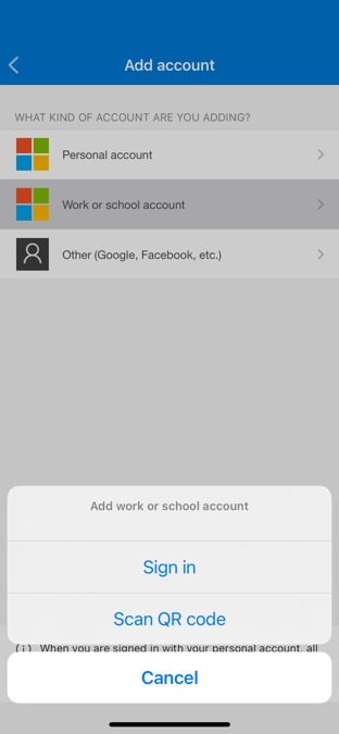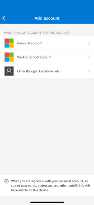 - Select the type of account you want to use for authentication. Either Personal or Work will be fine: