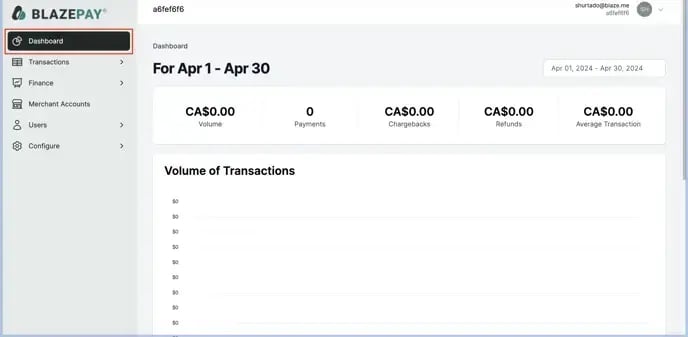 - Once the 6-digit passcode is input to the login screen, click Continue and you will now be able to view your BLAZEPAY merchant portal: