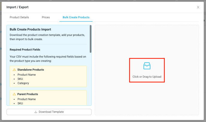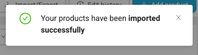 When your import is completed, you will be notified via a notification on your dashboard telling you whether the import was successful or had errors. If there are errors, click the notification and it will bring you to the bulk create products modal, where you can download an error report.