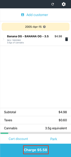 - Add your product to the cart and select charge