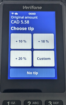 - On the terminal: the user will be prompted to enter a tip on the terminal then present their card for payment