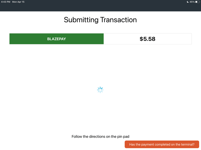 In rare cases, you may experience a situation where the payment terminal accepts the payment but it has not been recognized on the BLAZE POS. This is typically a result of network errors at your retail establishment.