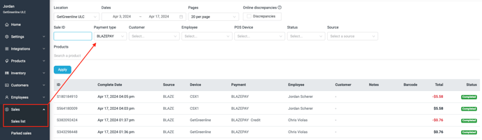 - Select the sales tab > sales list