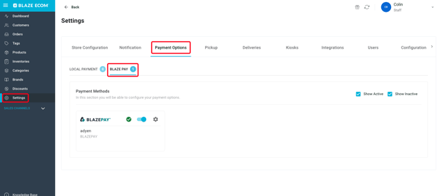 - Click Settings > Payment Options > BLAZEPAY