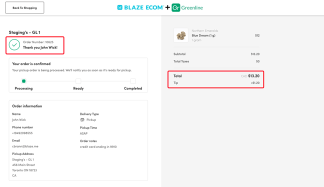- The order is now ready to be accepted and fulfilled in the Greenline Dashboard!