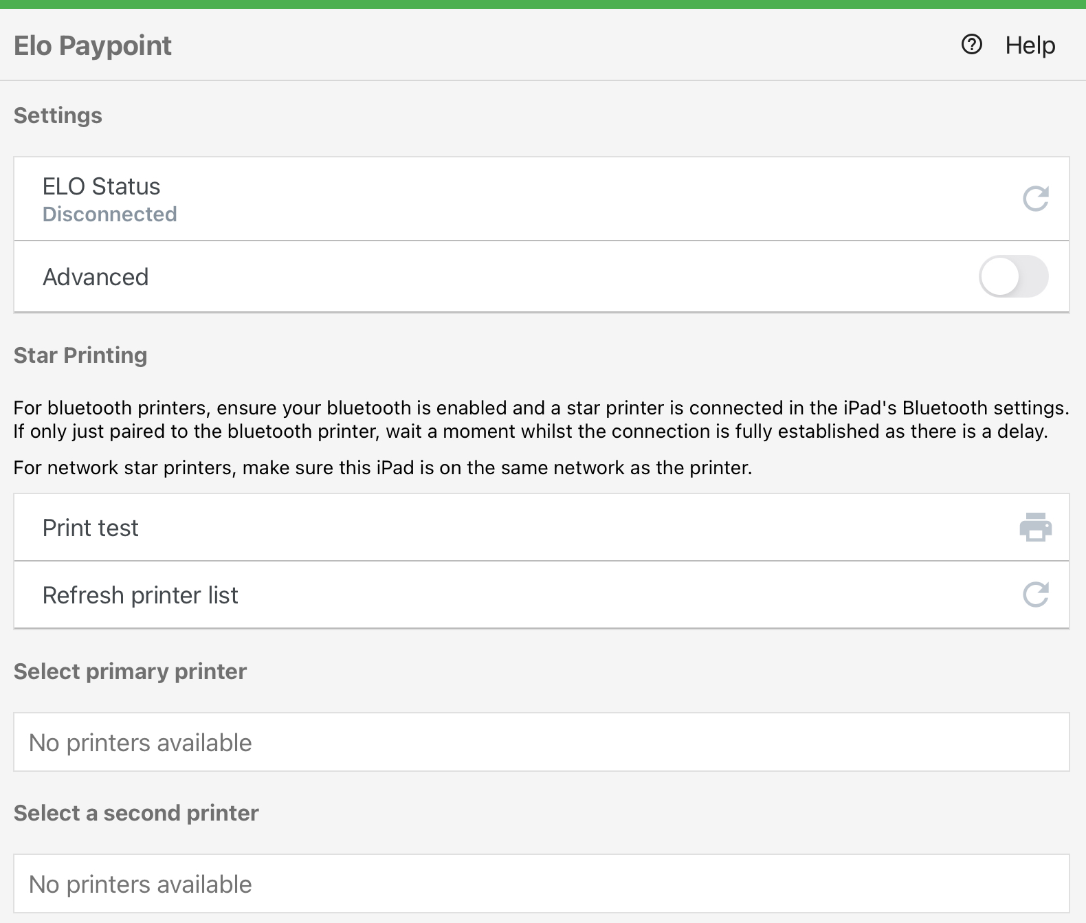 The ELO Paypoint tab is where you can connect your ELO Paypoint for iPads to the POS.