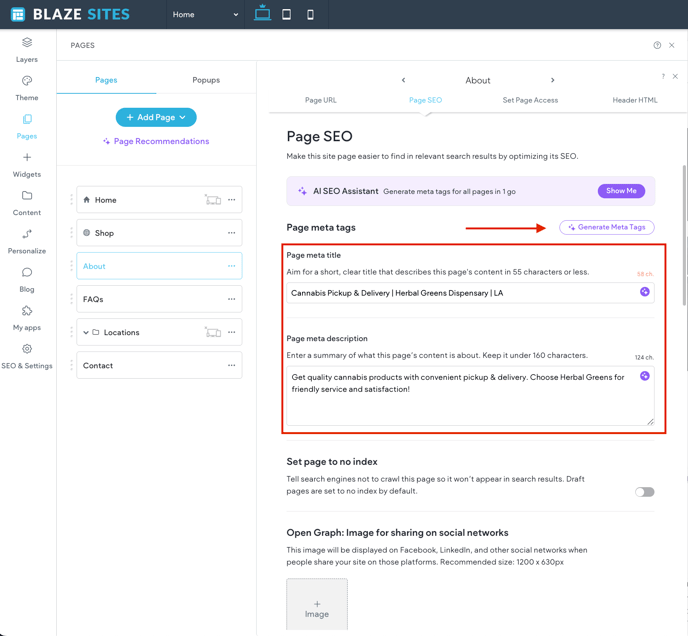 To create the page title and description simultaneously click on Generate Meta Tags.