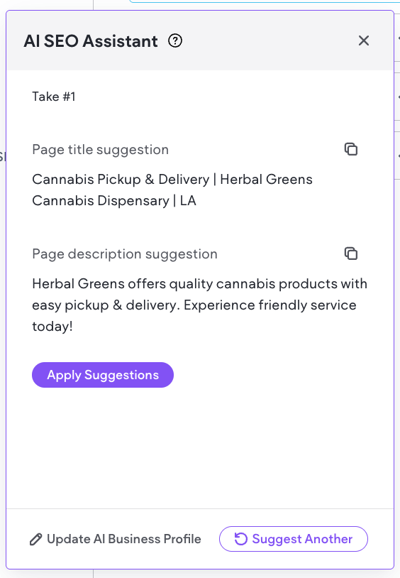 Use ✨AI to assist in creating the page title and description. AI can expedite the writing process and provide options and ideas to help in creating impactful SEO content. While AI serves as a valuable tool for optimizing SEO content, it is advisable to verify the generated content to ensure it aligns with your quality standards.