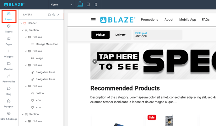 BLAZE Sites | Manage Elements (Layers)