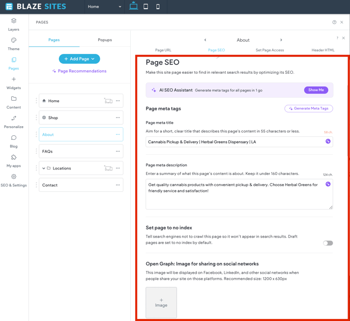 BLAZE Sites | Single Page Management (SEO)