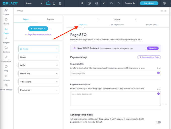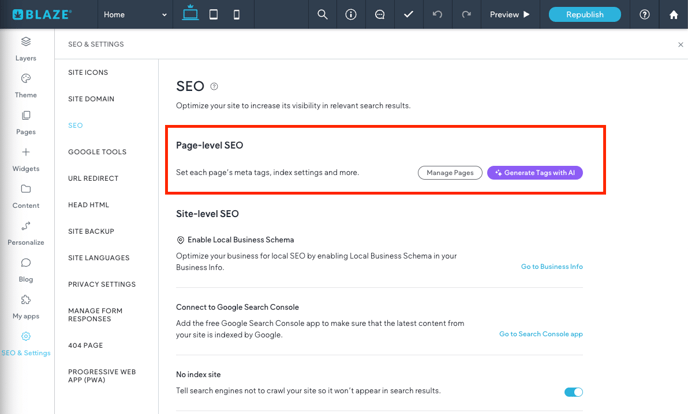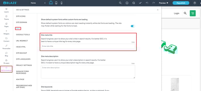 This article's intention is to give guidance on how to complete the BLAZE site's SEO fields in order to improve your site’s visibility to search engines and boost organic traffic