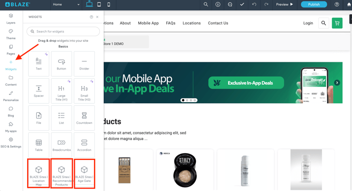 This article will explain what and how to use widgets in BLAZE Sites Editor