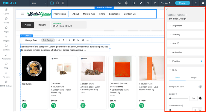 🚨 BLAZE Sites widgets have limited design customization.