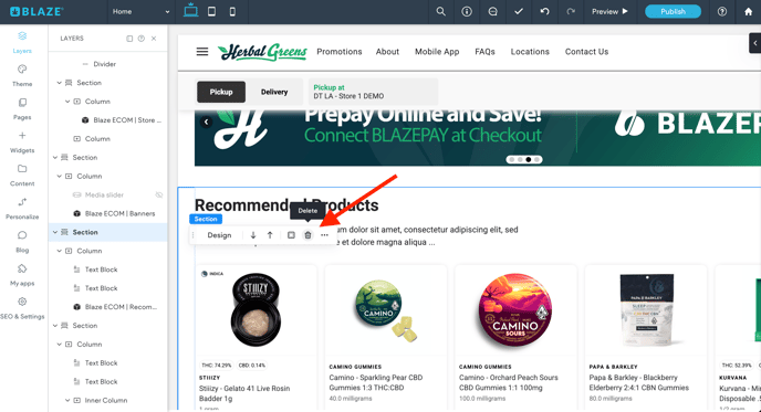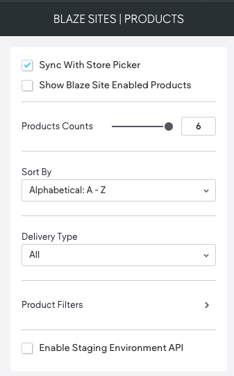 - Show BLAZE Site Enabled Products - When checked, display products that are enabled in BLAZE ECOM Mission Control.