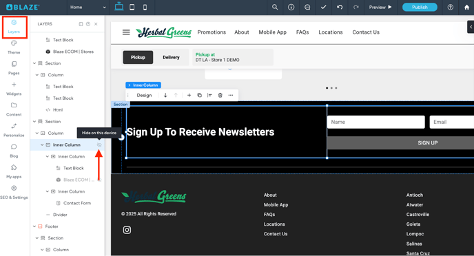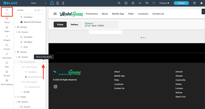 - You can hide widgets by selecting Layers in the side navigation menu and select the widget you would like to hide.