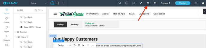 If widget or content is accidentally deleted or removed, you may hit the UNDO button on the top navigation bar.