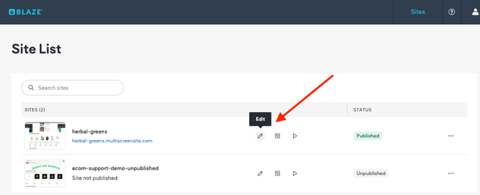 - Click on "Edit Site"