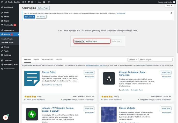 1. Click on Plugins and Add New Plugin