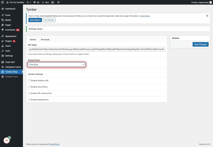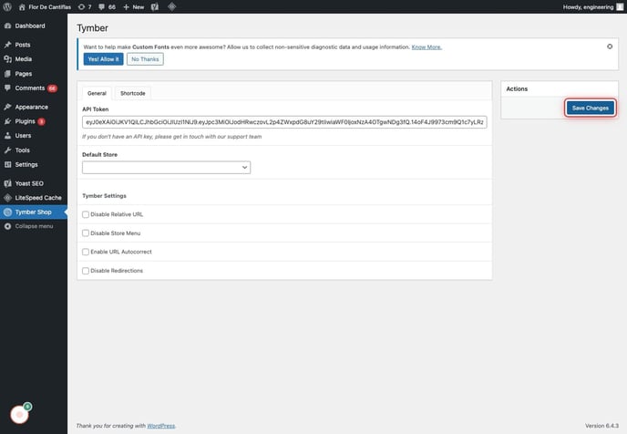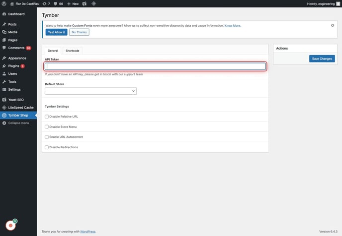 - ECOM Support will need the WP Admin Site Address to pair with the API token: