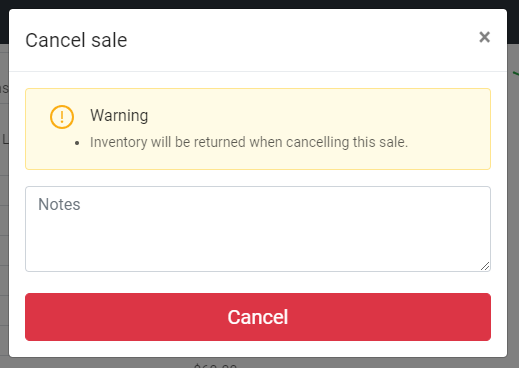 If you click on cancel, a popup will appear where you will need to enter in a cancellation note. Once you have entered in a note, you can submit and process the cancellation. Once the cancellation has been made, you will be able to see it in the sales history and cash movement section.