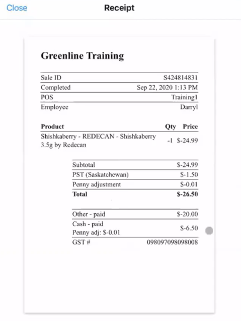 Note: If the "Automatic restock for refunded cannabis products" setting is disabled, the system will not automatically restock refunded cannabis products. It will be left as optional and will need to be manually selected at the time of the refund.