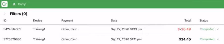 All completed refunds are documented in the sales history list and easily recognized by the red text. You can also view refunds in the cash movement section.