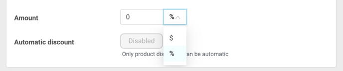 Select whether the discount will be based on a percentage off or a fixed dollar amount