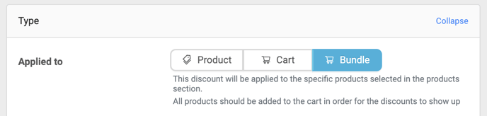 Note: Bundled discounts will not be able to be set to "Automatic" as they will need to be added to the cart as a bundle which will trigger the discount.