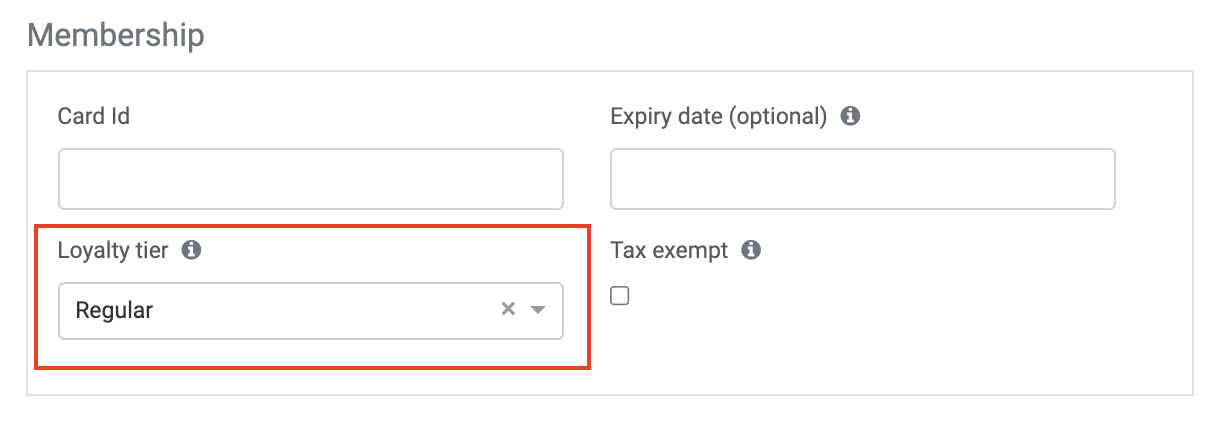 Under the Membership section of their profile, you are able to select the Loyalty tier from the drop-down menu that you'd like the customer to be added to