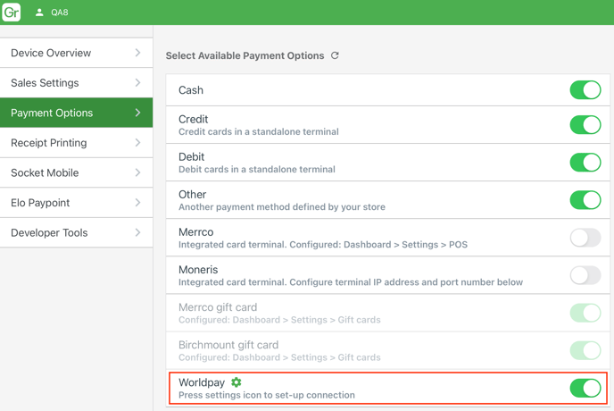 Access your BLAZE POS device and navigate to Settings > Payment Options