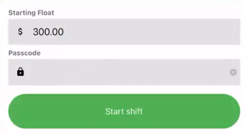 Enter in a starting cash float value greater than zero along with your unique employee passcode. This passcode should be set up in the dashboard or back-end.