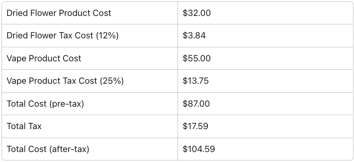 The dried flower product would have (5% GST + 7% PST for a total of 12% tax)