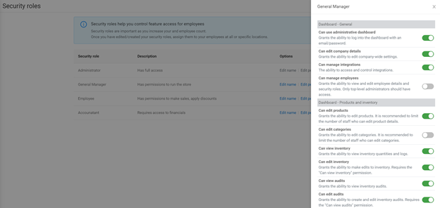 - Store Manager - this role can be modified and also provides full access to the system