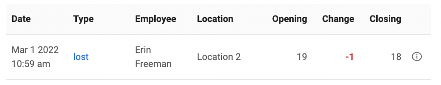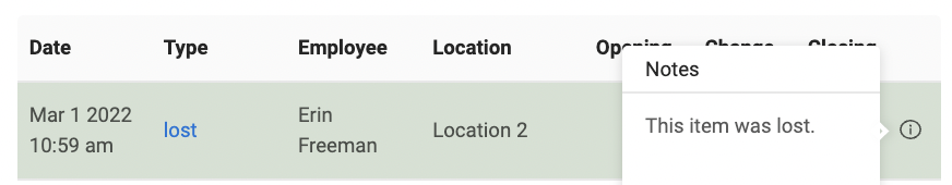If you leave a note explaining the inventory changes, you will be able to see the inventory log reflected below capturing the change. When you hover over the little circle, the entered note will appear.