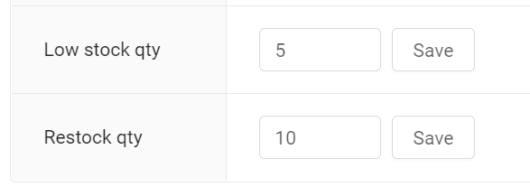 Customers can enter quantity thresholds to assist with low stock and restock levels.