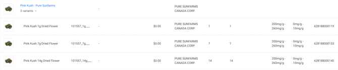 If you have 3 different products of Pink Kush by Pure Sunfarms with different weight variations you can save them as Variants in a "Pink Kush - Pure Sunfarms" parent folder for organization.