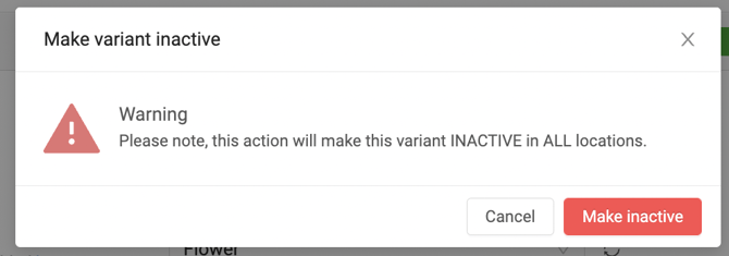 For example, perhaps you no longer sell a 1g version of a dried flower product and you do not want it to show up on the POS any longer, you can simply change the variant to inactive. Not having it show up, reduces the amount of information needing to be retrievable.