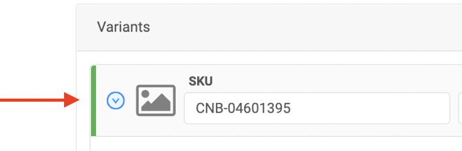 An easy way to identify if a variant is active or inactive is the colour bar to the left of the SKU. Green indicates the variant is active and red will indicate the variant is inactive.