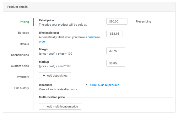 Updating or changing any of these values will adjust all of the fields accordingly (retail price, margin, markup)