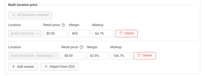 Set your desired margin and the retail price will automatically populate based on the percentage you assign.