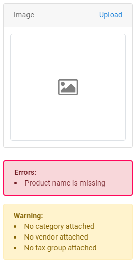 Next to the Basic Information section, upload a picture of your product so sales staff can easily identify the product on the POS device. Underneath the photo, warnings will be displayed if you have missed important information.