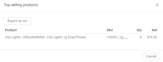 If you click on “View”, a pop-up will appear with all the top-selling products within the selected category. Users can select multiple filters if necessary.