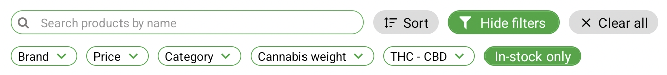 Note: when you sort THC / CBD in ranges, the max value will be used (ex: if the THC range is set to 15 - 20%, the feature will sort on the max value which in this case is 20%).