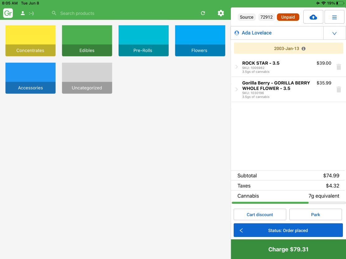 In BLAZE, you can manage all parked sales and online orders (paid and unpaid) directly through your POS device.