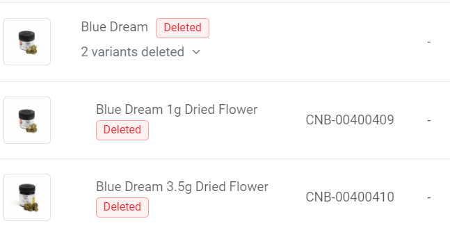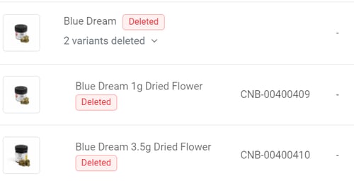 *Please note: If you delete all variants within a parent product, the parent product folder will remain active.