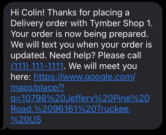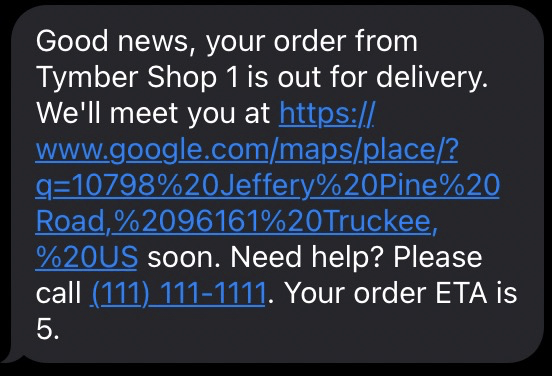 - When a customer places an order in the store, they will trigger an automatic Order Placed SMS Notification to the phone number associated with the order.