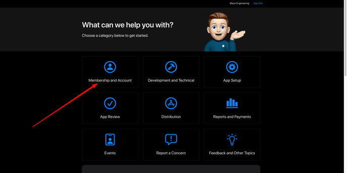 Step 1: Go to https://developer.apple.com/contact/topic/select and login with the same Apple ID you used to apply for the developer program